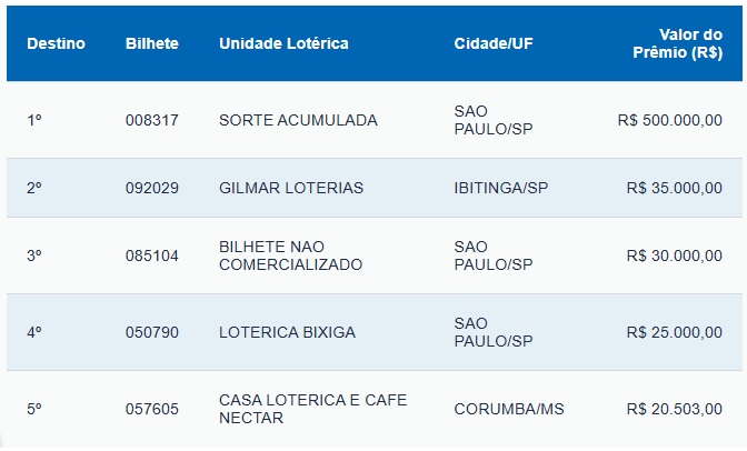 - Mês da Sorte – 106.234 apostas ganhadoras, R$ 2,50